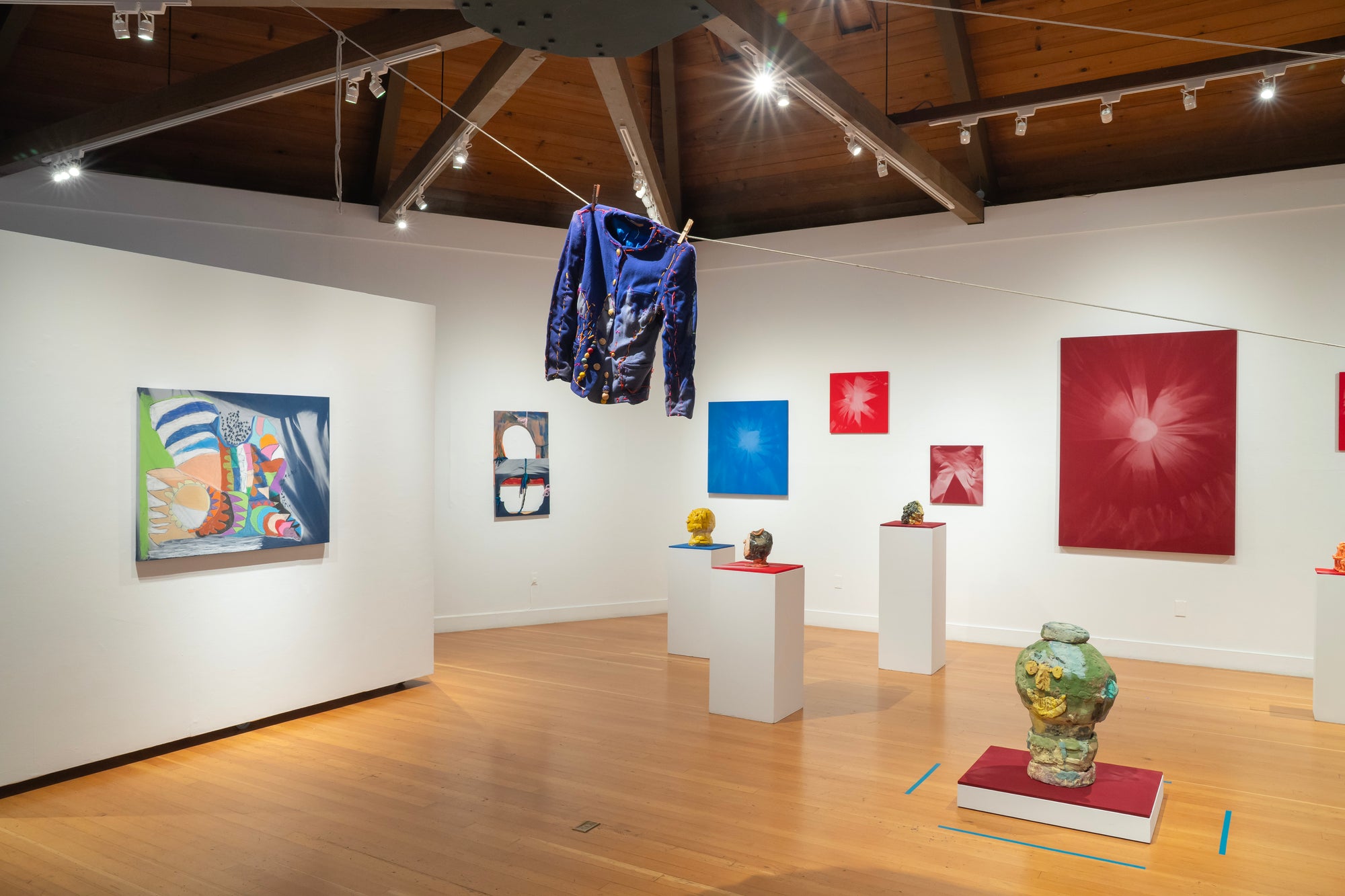 The duo of exhibition marks the culmination of a collaborative project two-plus years in the making between NIAD artists, staff, and artist Chris Duncan. The first-ever instance in which Duncan has shared his process with other artists, it began with deceptively simple elements—a pulley system to bring fabric to the roof, sun, moonlight, wind, and time—and resulted in sun-bleached fabrics that artists then used as canvases for their work.
