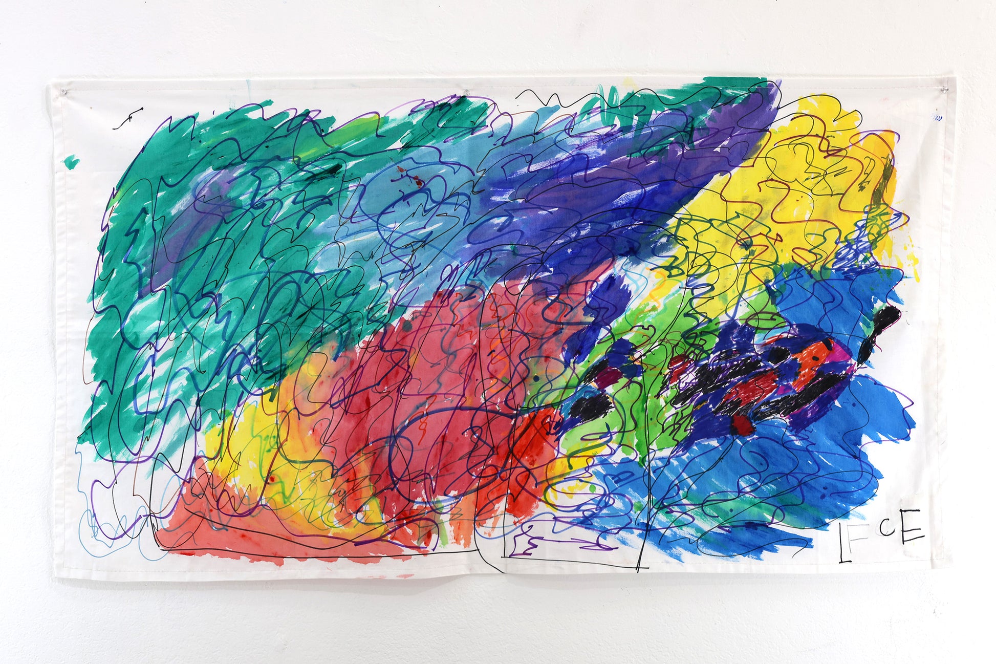 Acrylic, marker, fabric paint on sewn fabric, unique 2024