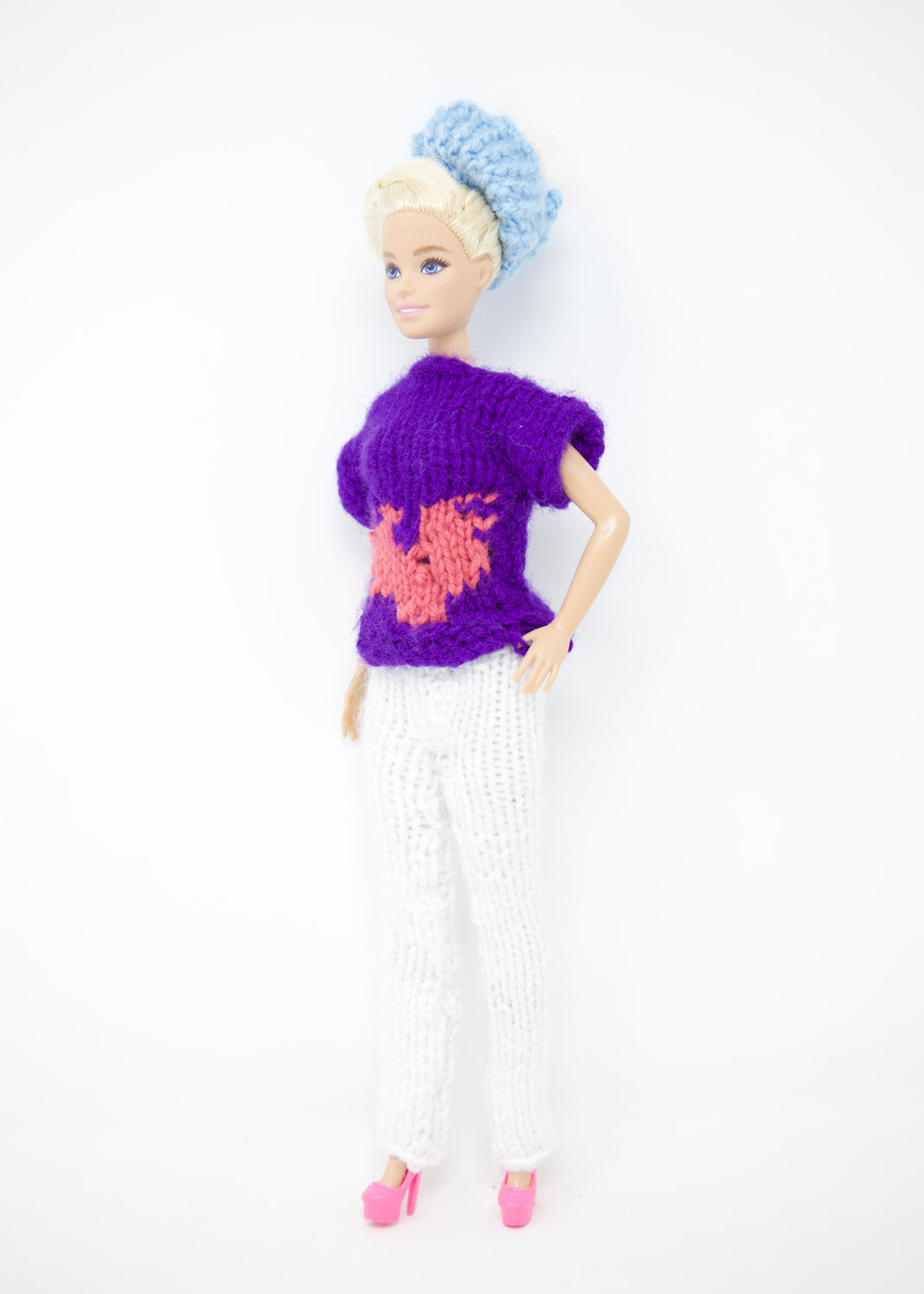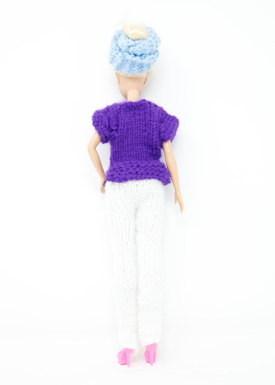 Crochet yarn on found doll, 2026